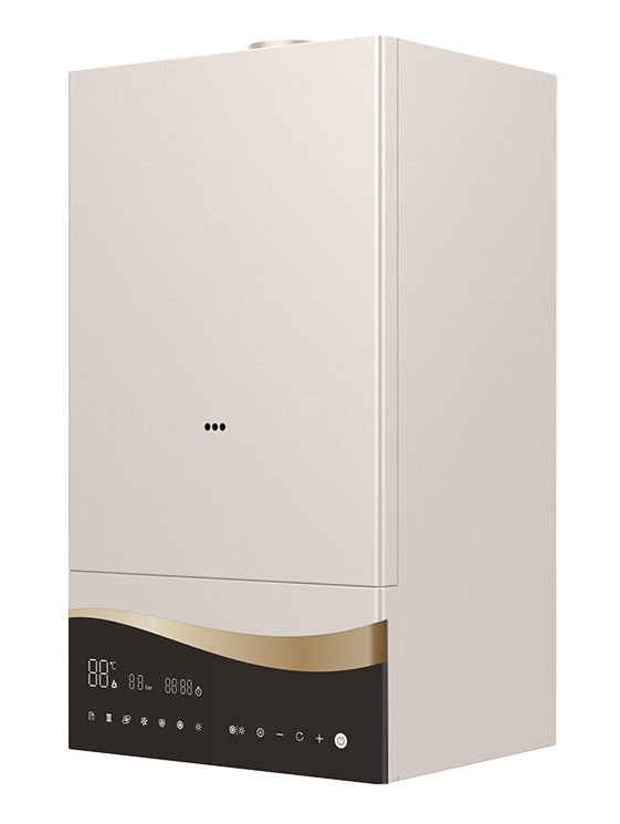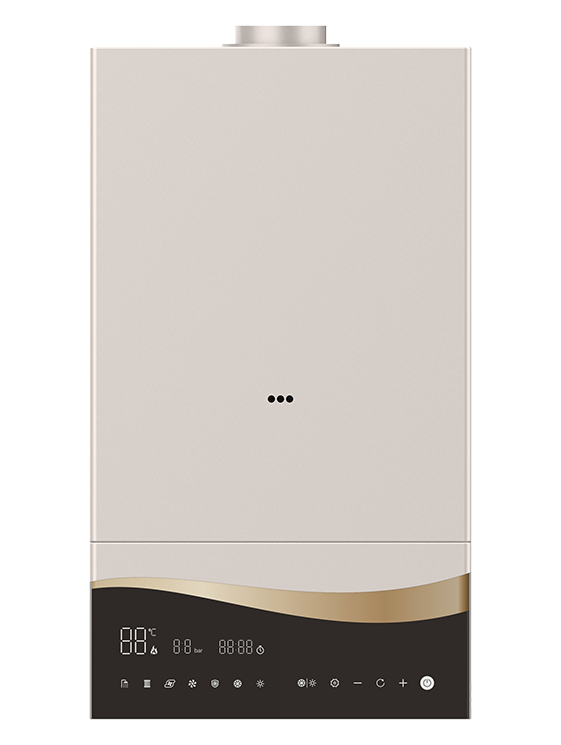 燃氣壁掛爐進口鋼琴烤漆工藝面板,流水波浪式顯示屏設計,簡介大氣操作方便。